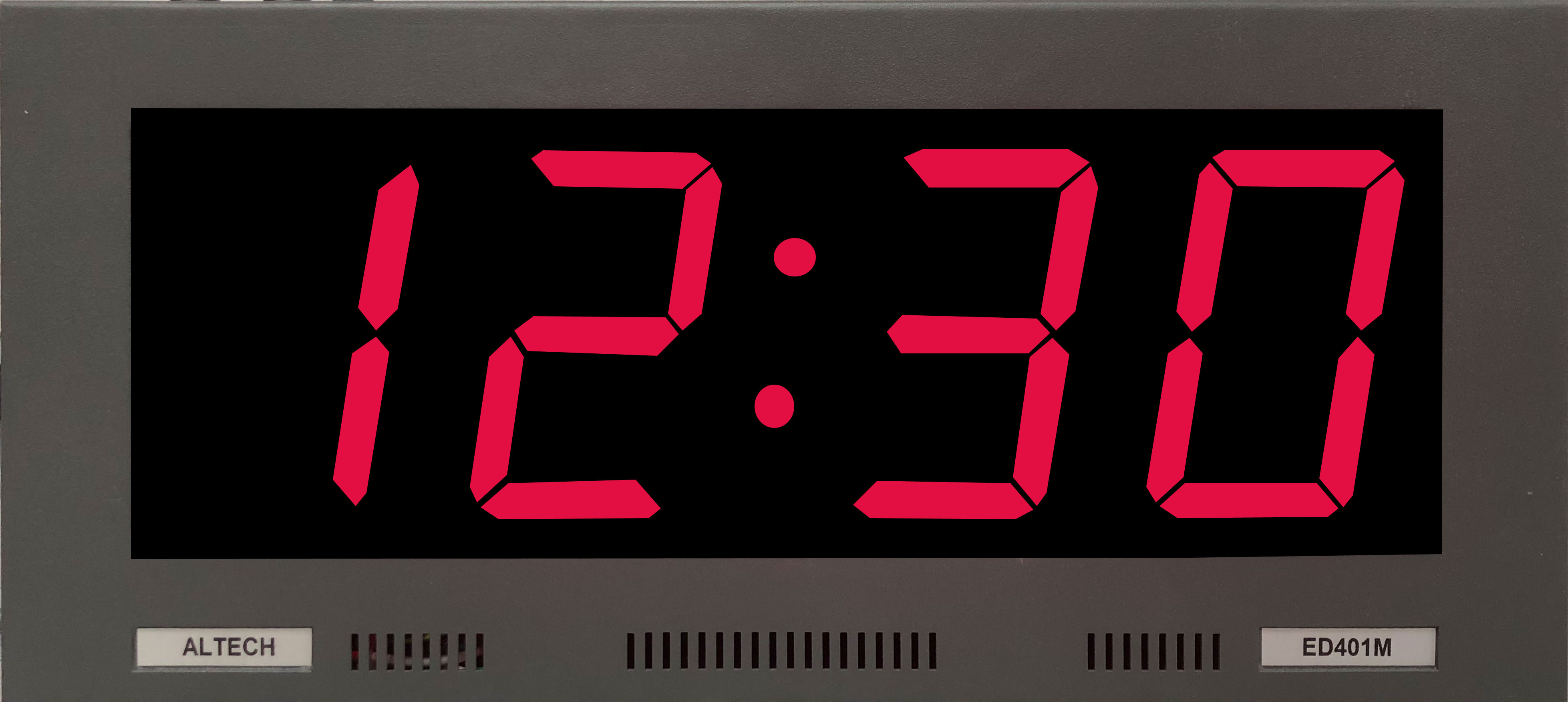 ED401 is a large character time Display with an Ethernet network interface. The Real Time Clock (RTC) can be periodically synchronised with a host computer clock over the network. The network interface supports both 10BaseT and 100BaseT Ethernet connections. With the TCP/IP Synchronised Real Time Clock system, one master Time Server will update all slave clocks with Time Server time.